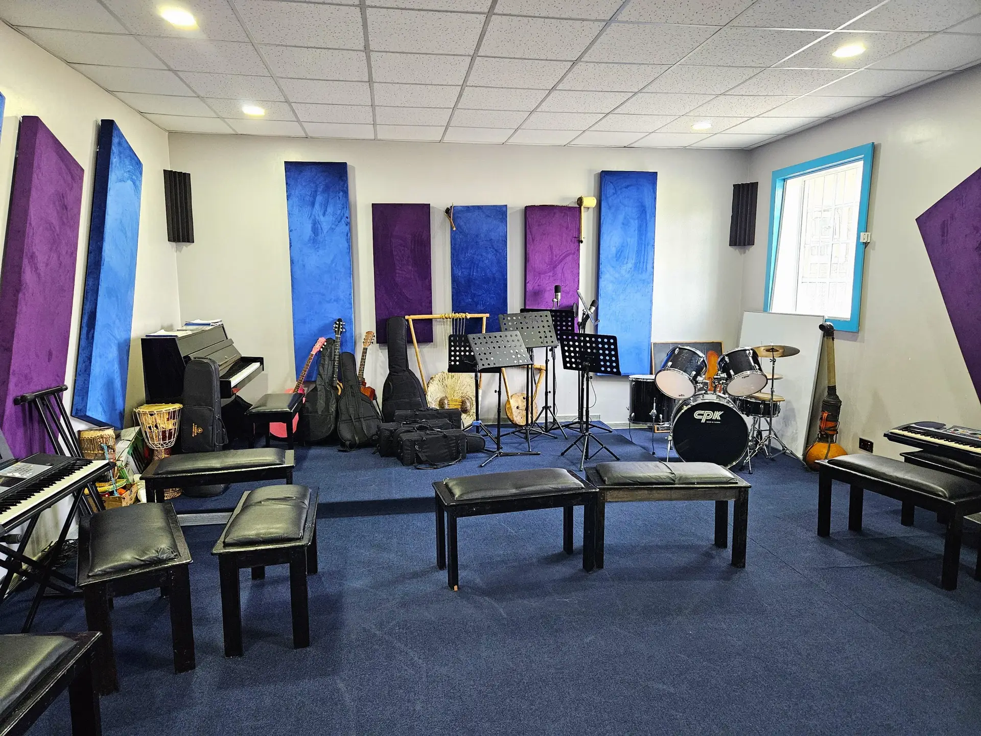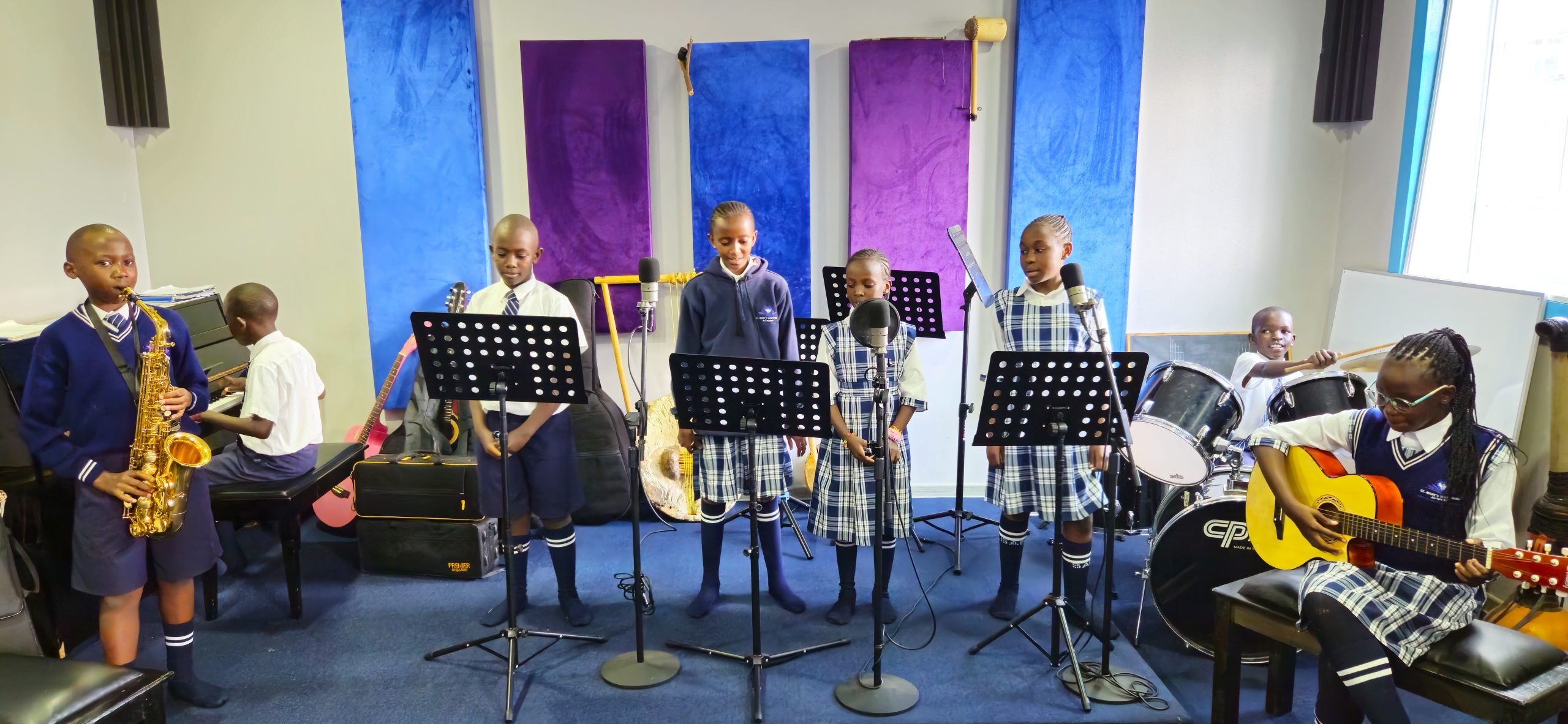 Our soundproof, state-of-the-art music room is equipped with a variety of musical instruments and recording technology, offering students an ideal environment to explore their artistic talents. Whether practicing solo or performing in groups, students are encouraged to develop their musical abilities in a space designed for optimal acoustics and creative expression.